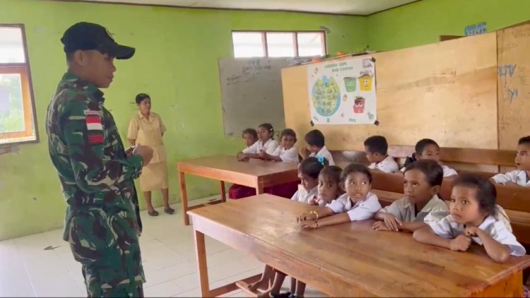 Belu, RedaksiDaerah.com – Wujud kepedulian terhadap pendidikan dan kesehatan generasi muda di wilayah perbatasan, Satgas Pamtas RI–RDTL Sektor Timur Yonarmed 12 Kostrad Pos Lookeu melaksanakan kegiatan pengajaran di SD N 1 Salore, Desa Tulakadi, Kecamatan Tasifeto Timur, Kabupaten Belu, NTT. Kegiatan ini difokuskan pada materi pola hidup sehat guna menanamkan kebiasaan hidup bersih dan sehat sejak usia dini, Jumat (27/02/2026).