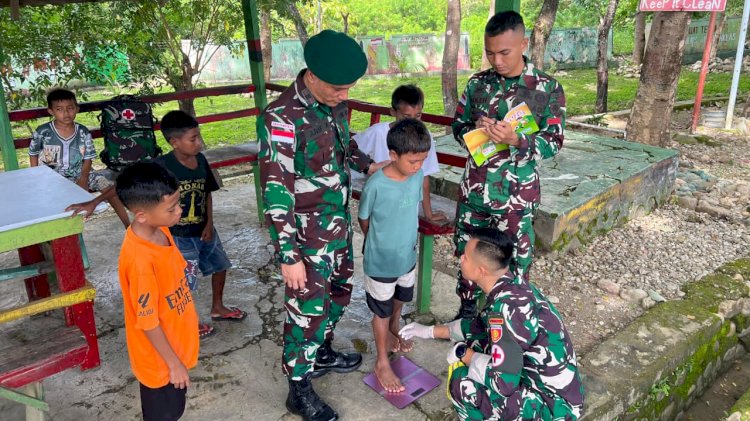 Belu, RedaksiDaerah.com – Personel Pos Salore Satgas Pamtas RI–RDTL Sektor Timur dari Yonarmed 12 Kostrad melaksanakan kegiatan pelayanan kesehatan bagi anak-anak di wilayah perbatasan yang bertempat di Pos Salore, Desa Tulakadi, Kecamatan Tasifeto Timur, Kabupaten Belu, Nusa Tenggara Timur. Kegiatan ini merupakan bentuk kepedulian Satgas terhadap kesehatan dan tumbuh kembang anak-anak di wilayah perbatasan, Jumat (20/02/2026).