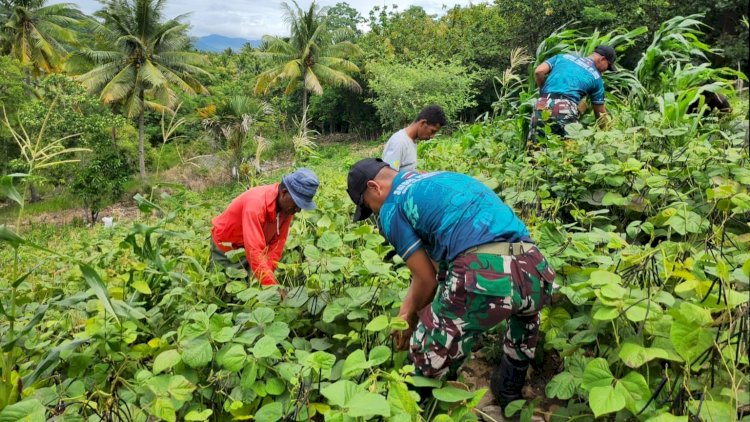Dengan penuh semangat kebersamaan, personel Pos Auren bersama warga turun langsung ke kebun untuk memanen kacang hijau yang telah siap dipetik. Suasana keakraban terlihat saat prajurit dan masyarakat bekerja bersama, saling membantu mengumpulkan hasil panen yang nantinya akan dimanfaatkan untuk kebutuhan keluarga serta menambah penghasilan petani setempat.