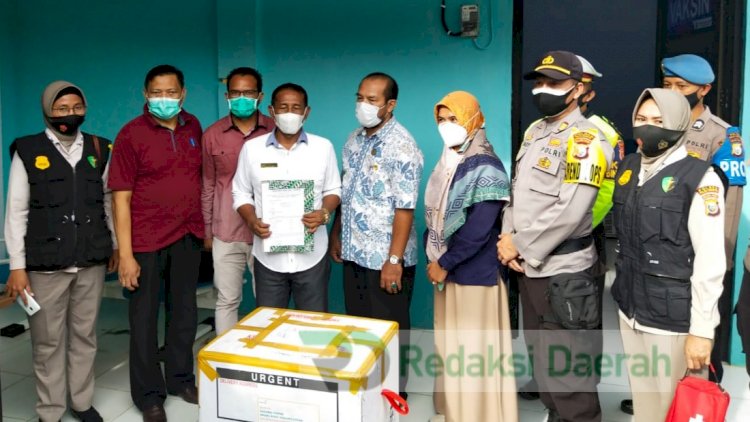 Morotai, RedaksiDaerah.com - 1.360 Vaksin Covid-19 telah tiba di Kabupaten Pulau Morotai dengan pengawalan ketat oleh TNI Polri Vaksin Covid-19 langsung disimpan di ruang penyimpanan Vaksin Kantor Dinas Kesehatan Pulau Morotai, Maluku Utara, Sabtu (06/02/21) pukul 08.30 WIT.