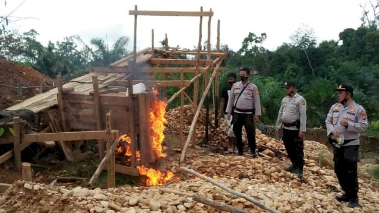 Selanjutnya 1 rakit untuk mendompeng, 2 Asbuk dan 1 pondok terpal dibakar agar tidak bisa digunakan lagi.