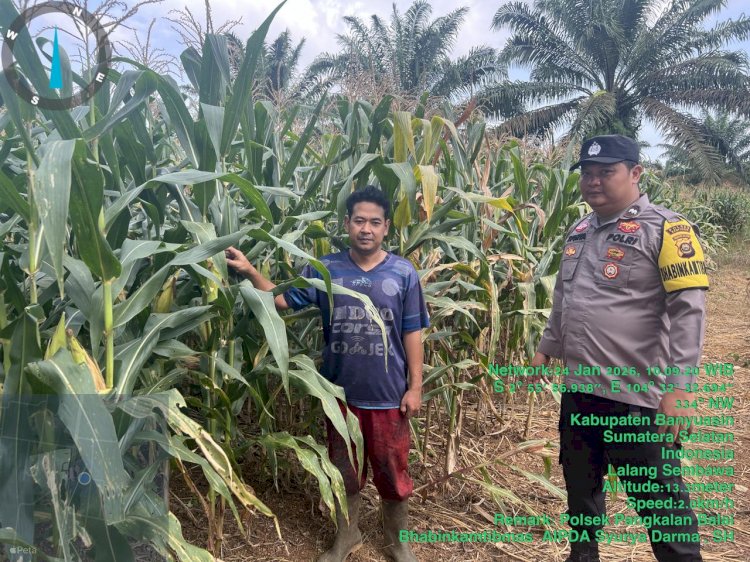 BANYUASIN, RedaksiDaerah.Com – Dalam Rangka Mendukung program ketahanan pangan nasional, Bhabinkamtibmas Polsek Pangkalan Balai melaksanakan kegiatan pengecekan dan perawatan tanaman jagung yang diproyeksikan sebagai sumber pangan berkelanjutan.