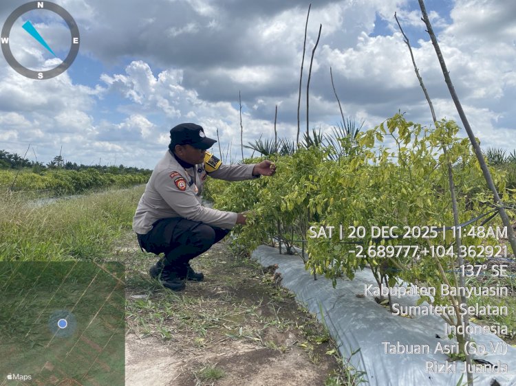 BANYUASIN, RedaksiDaerah. Com – Personel Bhabinkamtibmas Polsek Pulau Rimau melaksanakan kegiatan pembinaan dan penyuluhan kepada masyarakat Desa Tabuan Asri, Kecamatan Pulau Rimau, Kabupaten Banyuasin, pada Sabtu (20/12/2025) siang. Kegiatan yang dimulai pukul 13.45 WIB ini berfokus pada penguatan program pemerintah di bidang ketahanan pangan.