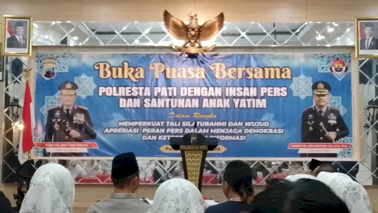 polrestapati - RedaksiDaerah.com Suasana hangat dan penuh kebersamaan mewarnai Aula Sarja Arya Racana, Rabu (25/2/2026) pukul 16.00 hingga selesai. Polresta Pati menggelar kegiatan buka puasa bersama insan pers serta santunan anak yatim sebagai wujud silaturahmi dan penguatan sinergitas antara kepolisian dan media.