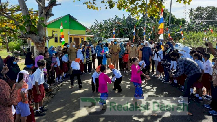 Morotai, RedaksiDaerah.com - Gedung Pendidikan Anak Usia Dini (PAUD) Kelompok Bermain Hinoporimoi, Desa Juanga, Kecamatan Morotai selatan, Kabupaten Pulau Morotai, Maluku Utara, diresmikan, Senin (05/04/21).