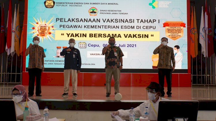 “Alhamdulillah keluarga besar Kementerian ESDM yang ada di Cepu ini bisa ikut mendukung percepatan vaksinasi. Hari ini dimulai dan tampak teratur, dibuat system shif sehingga tidak bergerombol,” ucap Bupati.