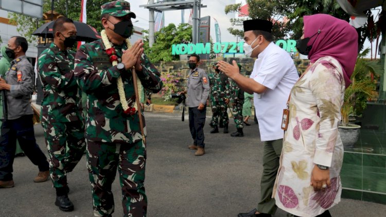 Bupati H. Arief Rohman, S.IP, M.Si beserta Wakil Bupati Tri Yuli Setyowati, ST, MM dan jajaran Forkopimda Kabupaten Blora menyambut kedatangan rombongan Pangdam IV/Diponegoro di Markas Komando Distrik Militer (Kodim) 0721 Blora.