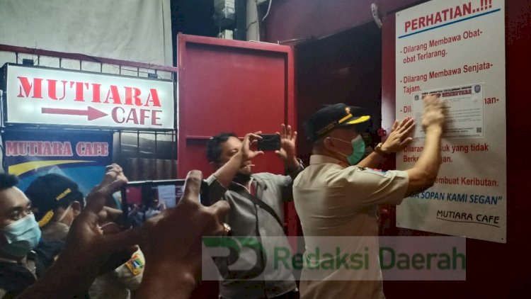 Jakarta, RedaksDaerah.com - Satuan Polisi Pamong Praja (Satpol PP) DKI Jakarta menutup sementara operasional Mutiara Cafe Jalan Kedoya, Kebon Jeruk, Jakarta Barat dan Resto Mutiara di Taman Palem, Cengkareng, Jakarta Barat, DKI Jakarta, Minggu dinihari (14/03/21).