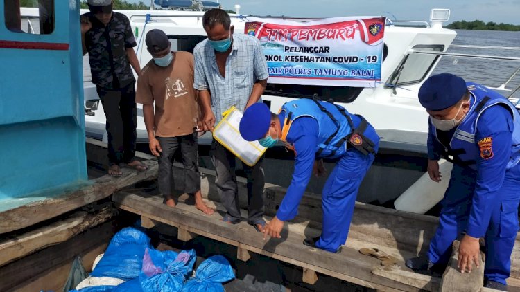 Tanjungbalai |Sumut| - Tim Sat Polair Polres Tanjungbalai melaksanakan sosialisasi tentang anjuran protokol kesehatan menuju adaptasi kebiasaan baru.