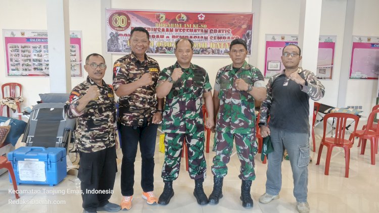 Tanah Datar — RedaksiDaerah.com — Dalam rangka memperingati HUT TNI ke-80, Kodim 0307 Tanah Datar bersama FKPPI 0307 Tanah Datar menggelar kegiatan bakti sosial kesehatan di Puskesmas Pagaruyung, Kecamatan Tanjung Emas, Kabupaten Tanah Datar, Minggu (21/9/2025). Kegiatan ini meliputi aksi donor darah dan penyerahan bantuan sembako bagi masyarakat yang membutuhkan. Suasana puskesmas sejak pagi sudah dipadati peserta yang antusias berpartisipasi, baik sebagai pendonor maupun penerima bantuan.