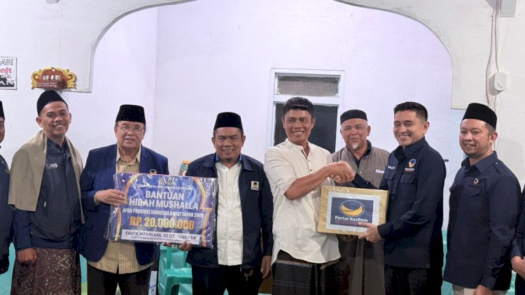 Tak berhenti di angka Rp20 juta, DPW NasDem Sumbar juga menyerahkan bantuan Al-Qur’an kepada pengurus Mushalla Hidayatussalam. Simbolik? Ya. Tapi dalam politik, simbol adalah bahasa yang paling cepat dipahami publik.
