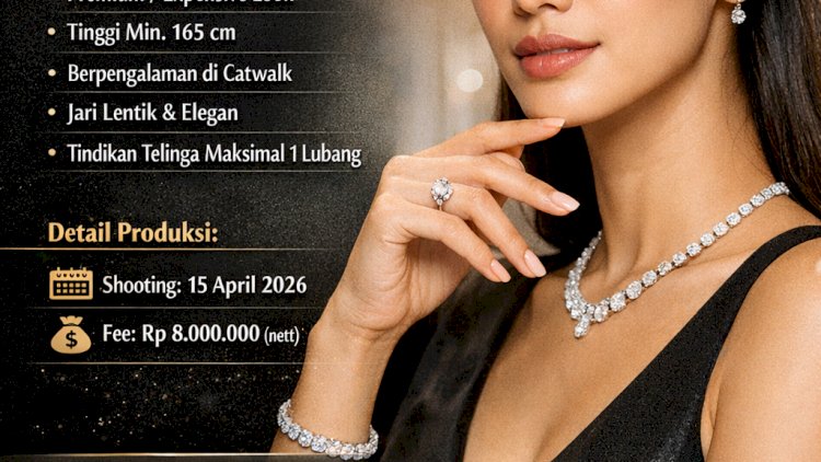 Jakarta, RedaksiDaerah.com — Industri fashion dan perhiasan kembali membuka peluang besar bagi talenta muda Indonesia. Sebuah brand perhiasan menggelar open casting untuk kebutuhan konten digital, dengan penawaran fee mencapai Rp8 juta bersih (nett) bagi kandidat terpilih.