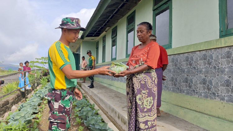 Belu, RedaksiDaerah.com – Personel Pos Fohuk Satgas Pamtas RI-RDTL Sektor Timur Yonarmed 12 Kostrad melaksanakan kegiatan penyuluhan ketahanan pangan serta panen sayur bersama warga Dusun Piebulak, Desa Loonuna, Kecamatan Lamaknen Selatan, Kabupaten Belu. Kegiatan ini menjadi wujud nyata komitmen Satgas dalam membantu masyarakat perbatasan meningkatkan kemandirian pangan sekaligus mempererat hubungan antara TNI dan rakyat.