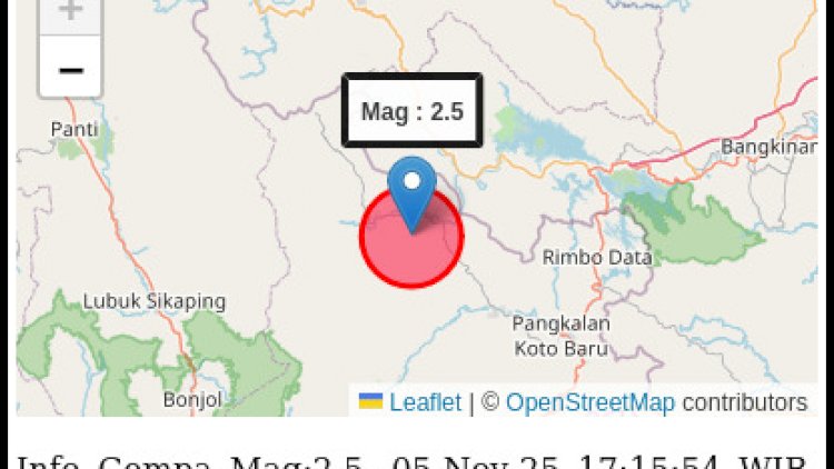 LimapuluhKota, RedaksiDaerah.com — Guncangan gempa bumi dengan magnitudo 2,5 menggoyang wilayah Kabupaten Limapuluh Kota, Sumatera Barat, pada Rabu (5/11) sore pukul 17.15 WIB. Berdasarkan data resmi Badan Meteorologi, Klimatologi, dan Geofisika (BMKG), episentrum gempa berada di koordinat 0,22 Lintang Utara dan 100,52 Bujur Timur, atau sekitar 21 kilometer barat laut Limapuluh Kota, dengan kedalaman 159 kilometer.