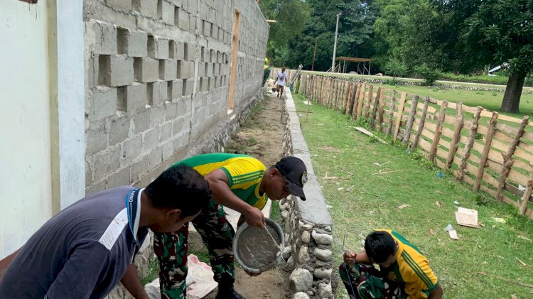 Dalam kegiatan tersebut, personel Pos Auren bersama warga bahu-membahu melaksanakan berbagai pekerjaan, di antaranya membantu pemasangan pembatas untuk pengecoran semen, pemasangan kayu, serta penyusunan batu pembatas. Suasana gotong royong yang penuh kebersamaan terlihat jelas, mencerminkan kuatnya sinergi antara prajurit TNI dan masyarakat setempat.