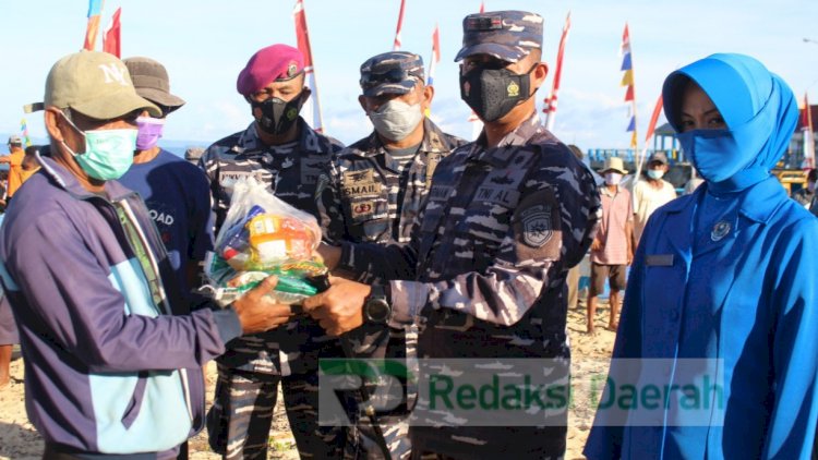 Selain vaksinasi Lanal Morotai Peduli dengan masa pandemi Covid-19 terhadap para nelayan dengan membagikan sekitar 250 bungkus sembako berupa beras, minyak goreng, gula, susu dan teh.