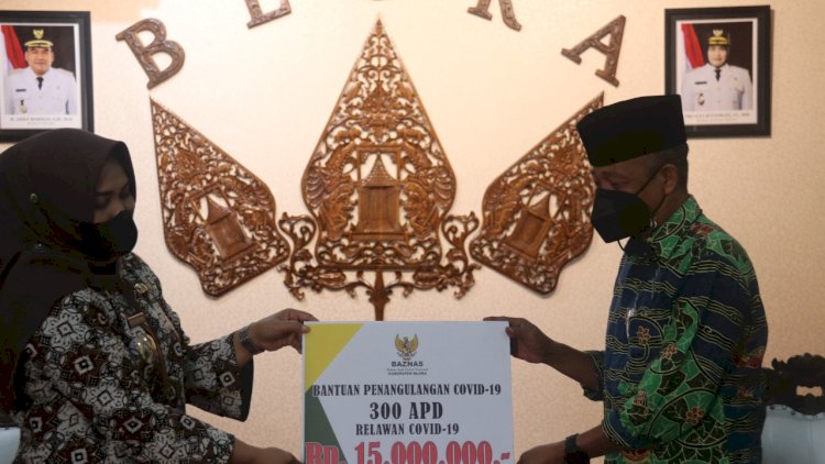 BLORA,REDAKSIDAERAH.COM - Badan Amil Zakat Nasional (Baznas) Kabupaten Blora kembali menyalurkan zakat dari Aparatur Sipil Negara (ASN) kepada relawan penanggulangan Covid-19. Bantuan kali ini diwujudkan dalam bentuk alat perlindungan diri (APD) sebanyak 300 buah.