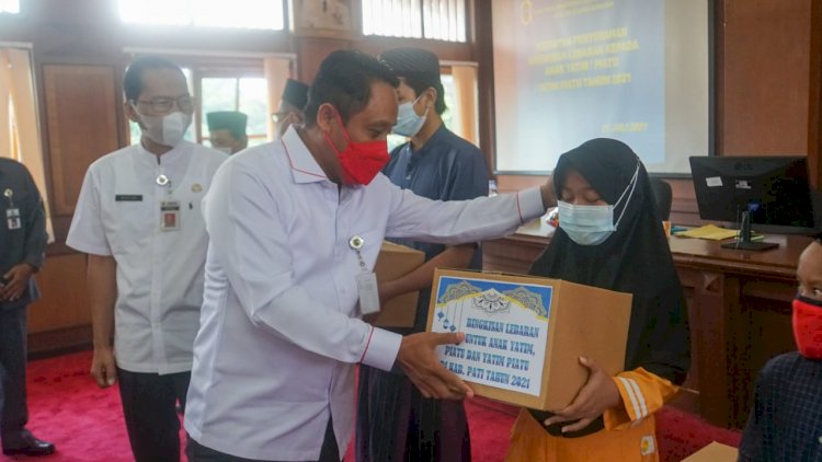 Pati|redaksidaerah.com Wakil Bupati Pati Saiful Arifin menyerahkan santunan kepada puluhan anak yatim piatu di lingkungan Kabupaten Pati. Seremoni penyerahan santunan dilakukan di ruang Pragolo Setda Pati, Rabu (21/7/2021).
