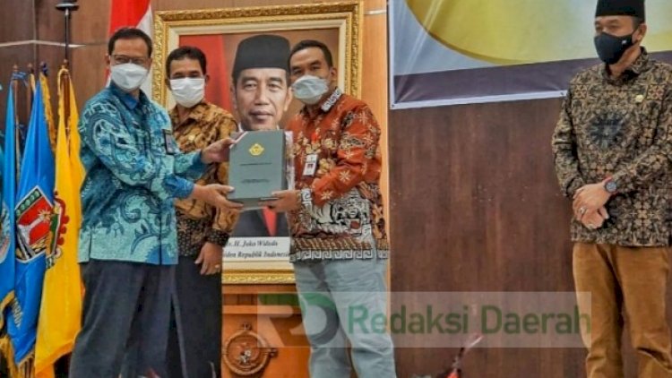 Sama seperti tahun kemarin, penyelenggaraan penyerahan hasil pemeriksaan LKPD untuk tahun ini dilakukan dengan mematuhi Protokol Kesehatan (Prokes) karena masih dalam pandemi Covid-19 dengan pembatasan undangan serta penerapan 3M.