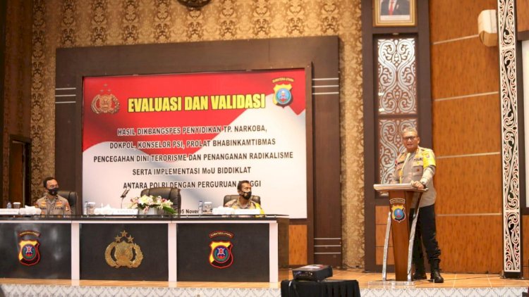 Kapolda Sumut hadiri Evaluasi dan validasi hasil dikbangspes Tindak Pidana narkoba, dokpol, konselor PSS, Prolat, bhabinkamtibmas, pencegahan dini terorisme dan penanganan radikalisme bertempat di Aula Tribrata Mapolda Sumut. (05/11/20)