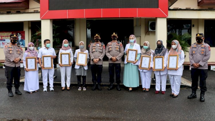 Agam, RedaksiDaerah.com - Dinilai berprestasi dan berinovasi serta berdedikasi tinggi dalam melaksanakan tugas, Kapolres Agam., AKBP Dwi Nur Setiawan, SIK, MH menganugrahkan reword kepada 7 (tujuh) orang personil Polres Agam dan 9 (sembilan) orang tenaga medis.
