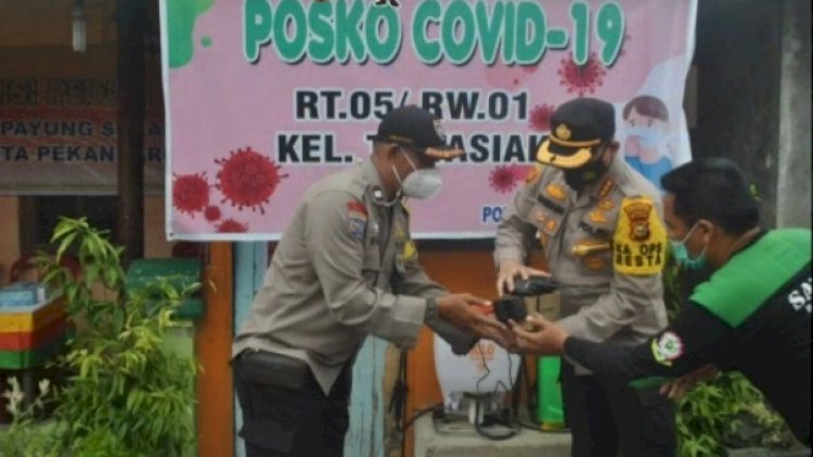 Setibanya Posko Covid-19, Kapolresta Pekanbaru Kombes Pol H Nandang Mu'min Wijaya., S.I.K.,M.H, memberikan arahan kepada Bhabinkamtibmas Tirta Siak yang dihadiri Aiptu Subagio dan Ketua Posko Covid-19 PPKM RT 05 RW 01 yang dipimin Jonnaini.