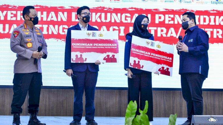 "Dan kita juga buktikan ketika saat Covid-19, pun distribusi bahkan vaksinasi ujung tombaknya di pihak Polri dan TNI. Karena itu dua tahun lalu diluncurkan program membantu putta-putri kepolisian yang pangkatnya baru perwira pertama untuk kita bantu pendidikannya," tutup Erick.