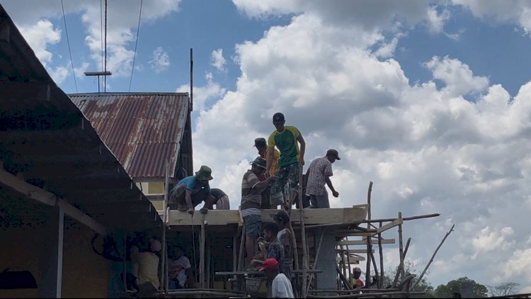 TTU, RedaksiDaerah.com - Prajurit Satgas Pamtas RI-RDTL Sektor Barat Yonarhanud 2 Kostrad Pos Haumeniana mengadakan gotong royong pengecoran atap Gereja Kapela Haumeniana bersama masyarakat Desa Haumeniana, Kecamatan Bikomi Nilulat, Kabupaten TTU, Rabu (05/11/2025)