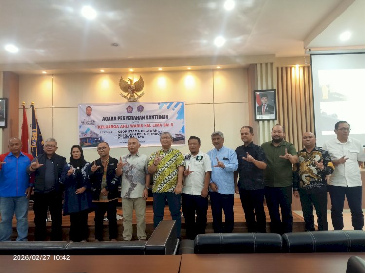 Belawan, Redaksidaerah.com - Rudi Hartono SH., Ketua KPI Cabang Belawan apresiasi kepala KSOP Belawan atas penyerahan santunan kepada keluarga ahli waris atas tenggelamnya kapal KM Lima Dai 8 yang diakibatkan cuaca buruk yang terjadi beberapa bulan lalu terjadi di Pulau Berhala yang dilaksanakan di Aula KSOP Cabang Belawan pada Jumat (27/02/2026) pagi hari.