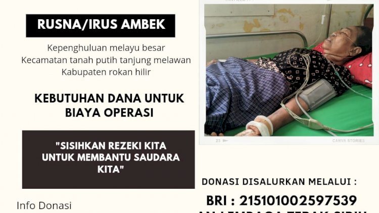 Pada pengumuman itu juga ada kalimat Mohon bantuan untuk Biaya operasi Mengingat kondisi ibu Rusnah yang saat ini sangat membutuhkan bantuan kita semua dan kondisi keluarga yang sangat membutuhkan bantuan dari kita semua.