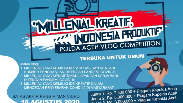 Banda Aceh [Aceh], Polda Aceh mengajak masyarakat khususnya kaum millenials untuk mengikuti lomba vlog berhadiah.