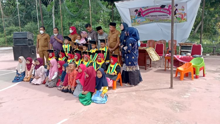 Rokan Hilir – Dua puluh Delapan Orang (28) orang Siswa/i PAUD Terpadu Suara Diraja Kepenghuluan Batu Hampar Kecamatan Tanah Putih Tanjung Melawan, Kabupaten Rokan Hilir Provinsi Riau, menjalani prosesi wisuda, selasa (06/07/2021) dilapangan Futsal Kepenghuluan Batu Hampar Kecamatan Tanah Putih Tanjung Melawan. Di Hadiri Tamu Undangan Datuk Penghulu Batu Hampar Pakhri Munir ,Kepala sekolah PAUD Sura DiRaja M.Irawan S,E Beserta Guru Lain nya Dan orang tua murid di sekolah tersebut.
