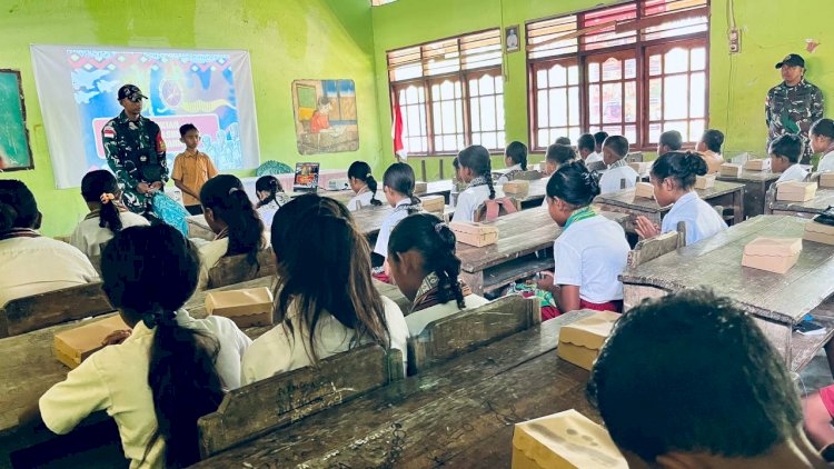 TTU, RedaksiDaerah.com - Satgas Pamtas RI-RDTL Sektor Barat Yonarhanud 2 Kostrad Pos Napan Bawah menggelar kegiatan Penyuluhan Pendidikan Wawasan Kebangsaan dan Bela Negara yang dilaksanakan di SD Katolik Tes, Desa Napan, Kecamatan Bikomi Utara, Kabupaten TTU, Senin (15/12/2025).