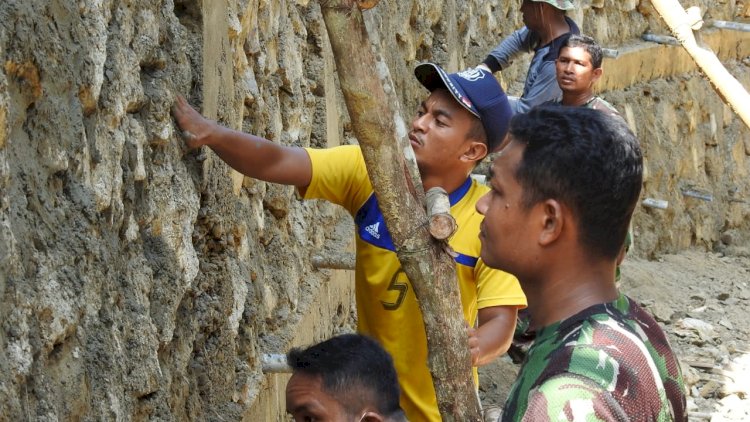 Dengan pelaksanaan pembangunan masih terus dikerjakan Satgas TMMD bersama segenap komponen masyarakat yang berada di lokasi.