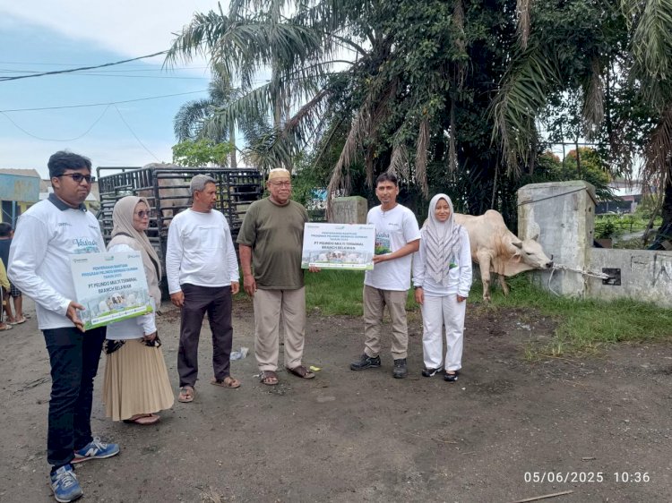 Medan, Redaksidaerah.com - PT Pelindo Multi Terminal (SPMT) Grup, Subholding PT Pelabuhan Indonesia (Persero) yang bergerak di bidang terminal nonpetikemas, kembali menyalurkan bantuan hewan qurban kepada masyarakat dalam rangka perayaan Hari Raya Iduladha 1446 H. Melalui program Tanggung Jawab Sosial dan Lingkungan (TJSL) bertajuk "Pelindo Berbagi Qurban 2025", sebanyak 90 hewan qurban berupa 77 ekor sapi dan 13 ekor kambing yang disalurkan ke berbagai wilayah kerja Pelindo Multi Terminal Grup yang tersebar di seluruh Indonesia.