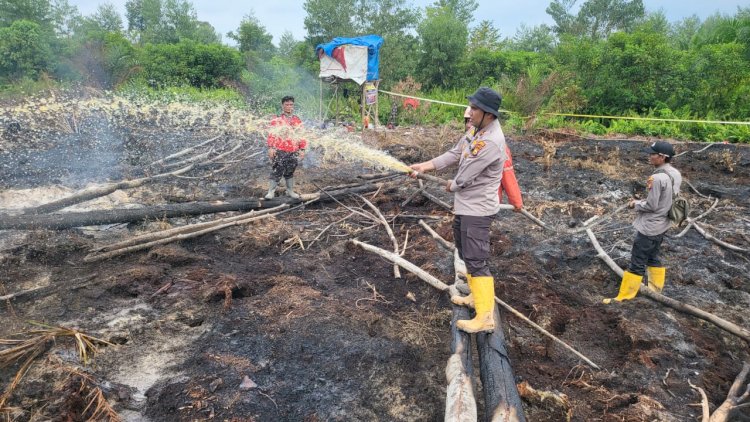 memberi arahan secara langsung kepada tim untuk pemasangan police line Dan Mendingan kan api dilakukan di beberapa lokasi lahan yang terbakar.