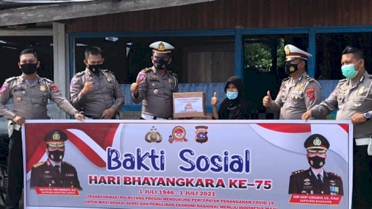 “Kegiatan bakti sosial dalam rangka menyambut HUT Bhayangkara ke-75 ini sekaligus sebagai bentuk hadirnya Polri di tengah-tengah masyarakat, untuk ikut membantu kesulitan masyarakat terlebih di tengah bencana wabah Covid-19 yang tidak hanya berdampak pada sektor kesehatan melainkan hampir seluruh sendi kehidupan termasuk ekonomi masyarakat,” ujar AKP Bayful mengakhiri.
