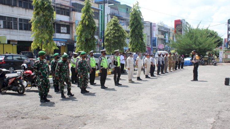 Padang Sidimpuan |Sumut| - Unsur tiga pilar terdiri dari Polres Padang Sidimpuan, Satpol PP, Kodim 0212/TS, melaksanakan pendipsilinan penerapan adaptasi kebiasaan baru.