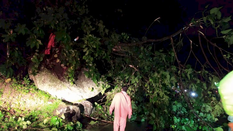 Redaksidaerah. Com. Hujan deras disertai angin menumbangkan satu pohon di Jalan Padang Painan, RT 01 RW 03 Sei Beremas Kelurahan Gates Kecamatan Kota Padang.