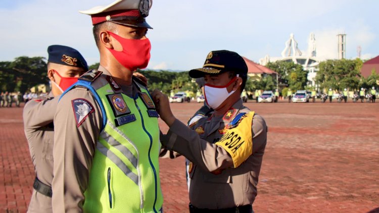 Apel gelar pasukan diawali laporan komandan upacara kemudian penyematan tanda pita operasi kepada tiga personel masing-masing dari Pomdam IM, Polantas dan Dishub Provinsi Aceh.