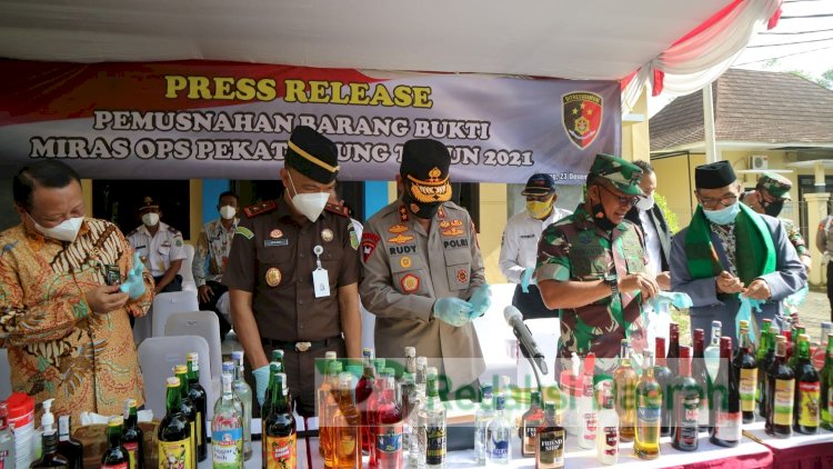 "Hari ini Polda Banten melakukan pemusnahan puluhan ribu botol minuman keras (Miras) yang dilaksanakan hasil dari operasi pekat maung 2021 sejak 14 Desember 2021 hingga 22 Desember 2021. Operasi ini sebagai bentuk keseriusan Polda Banten dalam upaya memerangi penyakit masyarakat, seperti yang diketahui minuman keras merupakan salah satu penyebab timbulnya gangguan kamtibmas," kata Irjen Pol Rudy Heriyanto.