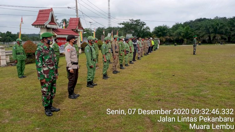 Apel digelar di halaman Kantor Camat Singingi, Kabupaten Kuansing, Provinsi Riau, Senin 7 Desember 2020. Diikuti sebanyak 50 orang Satlinmas.