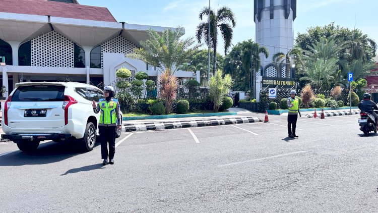 Ketika lalu lintas mengarah ke Masjid Baiturrahman, para Polwan sigap mengatur parkir kendaraan yang mulai menumpuk. Mereka juga membantu pejalan kaki menyeberang dan memastikan tidak ada gangguan di simpul kemacetan.