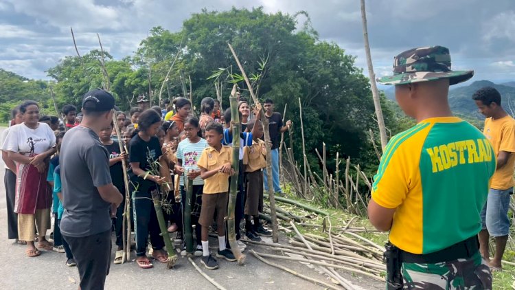Belu, RedaksiDaerah.com - Satgas Pamtas RI–RDTL Sektor Timur Yonarmed 12 Kostrad melalui Pos Nananoe melaksanakan kegiatan penanaman anakan bambu dalam rangka Aksi Nyata Adven Natal 2025 di Desa Nananoe, Kecamatan Nanaet Duabesi, Kabupaten Belu, Nusa Tenggara Timur. Kegiatan ini merupakan wujud kepedulian Satgas Pamtas terhadap kelestarian lingkungan di wilayah perbatasan.