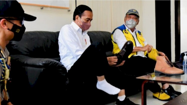 Akhirnya Menteri PUPR memutuskan untuk membeli sepatu bot kuning tersebut. Sementara itu, Jokowi memilih dua pasang sepatu berwarna cokelat tua dan hitam.