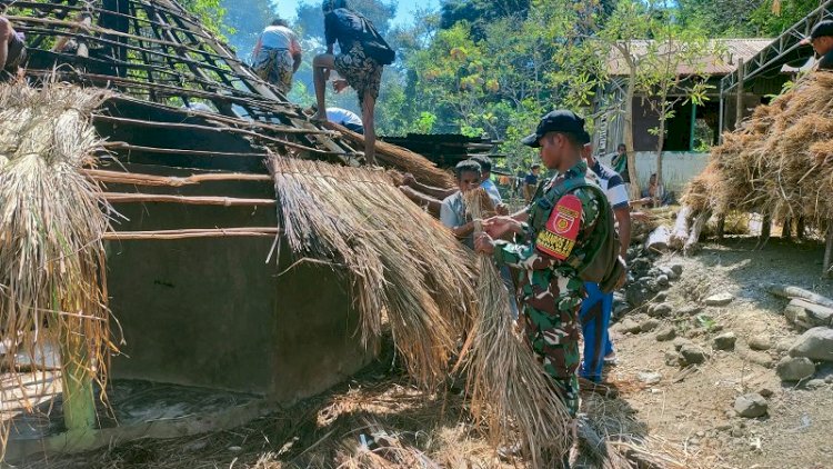 TTU, RedaksiDaerah.com - Prajurit Satgas Pamtas RI-RDTL Sektor Barat Pos Manamas bersama masyarakat Desa Manamas bergotong-royong membangun rumah adat di Desa Manamas, Kecamatan Naibenu, Kabupaten Timor Tengah Utara (TTU), Senin (6/10/2025).