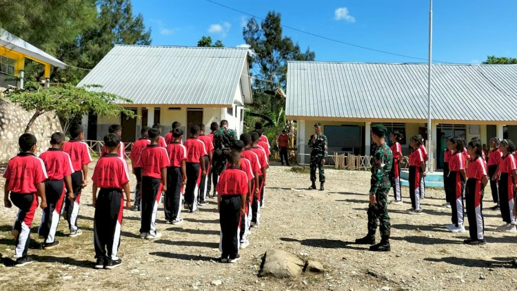 Satgas Pamtas RI–RDTL Sektor Timur Pos Ailala kembali melaksanakan kegiatan pembinaan bagi generasi muda di wilayah perbatasan. Bertempat di SMPN Kota Biru, Kecamatan Kobalima Timur, Kabupaten Malaka, personel Pos Ailala memberikan pelajaran baris-berbaris (PBB) kepada para siswa sebagai upaya meningkatkan kedisiplinan dan kekompakan.