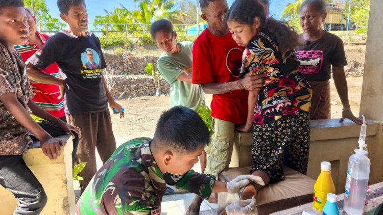 Tuabatan Barat, Redaksidaerah.com - Dalam upaya meningkatkan akses pelayanan kesehatan bagi masyarakat perbatasan, dokter dan tim kesehatan Satgas Pengamanan Perbatasan (Pamtas) RI-RDTL Sektor Barat dari Yon Arhanud 2 Kostrad menggelar kegiatan pelayanan kesehatan di Desa Tuabatan Barat, Kecamatan Miomaffo Tengah, Kabupaten Timor Tengah Utara (TTU), pada Sabtu, 27 September 2025.