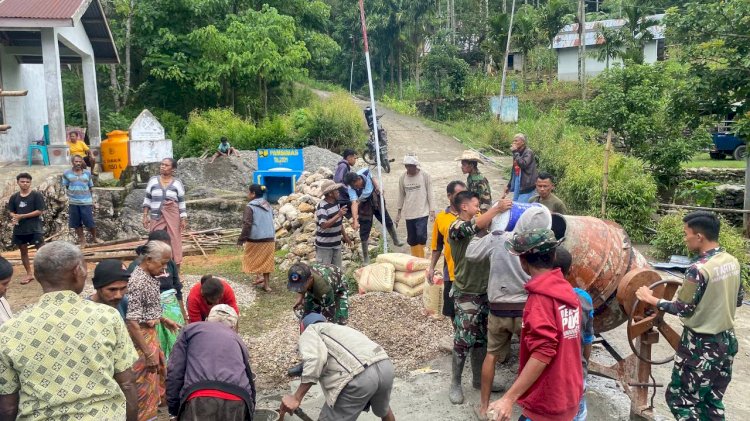 TTU, RedaksiDaerah.com – Satgas Pamtas RI–RDTL Sektor Barat Yonarhanud 2 Kostrad Pos Nilulat melaksanakan kegiatan karya bakti berupa pengecoran Gereja Jemaat Stu. Antonius di Desa Tubu, Kecamatan bikomi Nilulat Kabupaten TTU, Kamis (26/02/2036).