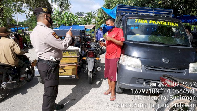 Rohil, RedaksiDaerah.com - Mengingat sering terjadi kejahatan C3 (Curat, Curas dan Curanmor), Polsek Tanah Putih Tanjung Melawan (TPTM) melakukan patroli di pasar, Kecamatan TPTM, Kabupaten Rokan Hilir (Rohil), Riau, Jum'at (08/01/21).